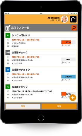 タスクは自分にも発行できるので、定期的なチェックなども忘れずに実施できます。依頼したタスクの進捗状況はメーター形式で表示されるので一目でわかります。