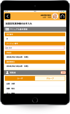 らマニュアルを更新を行えば最新のマニュアルがメンバーのもとにすぐに公開され常に最新のマニュアルをいつでもどこでも確認できます。